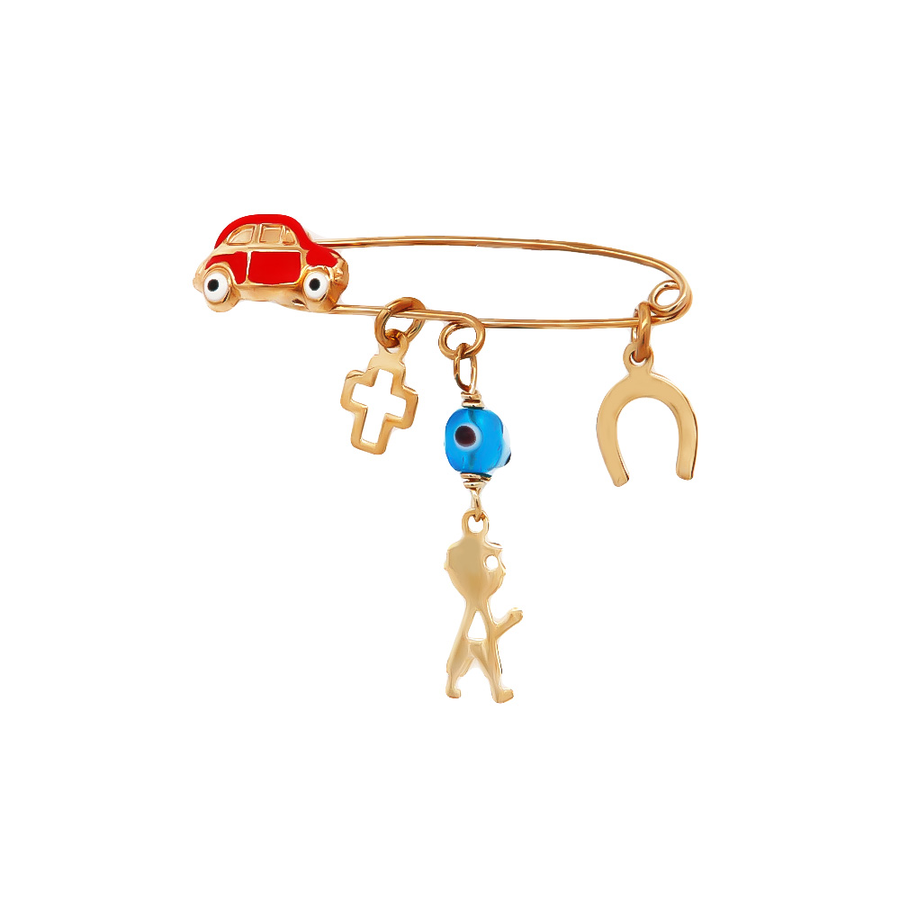 Παραμάνα με αυτοκινητάκι, σταυρουδάκι, ματάκι, αγοράκι και πεταλάκι, σε χρυσό 9Κ