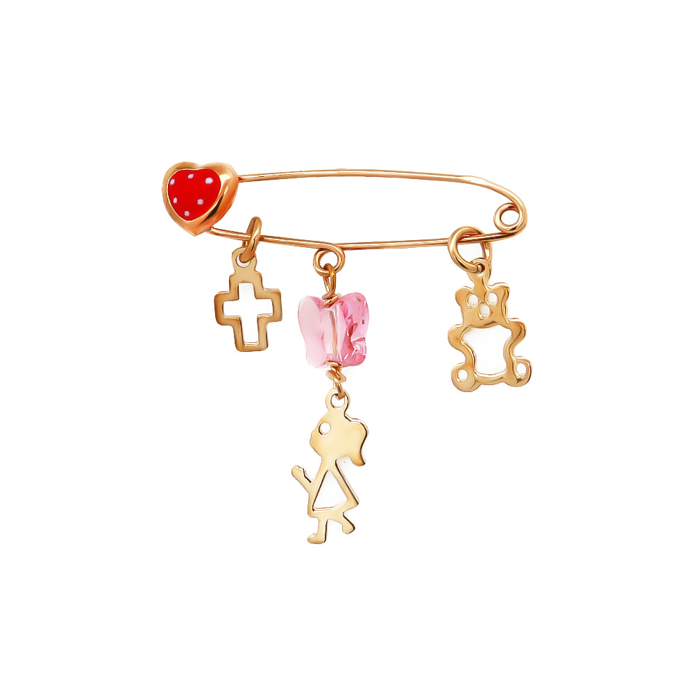 Παραμάνα με καρδιά, σταυρουδάκι, πεταλούδα, κοριτσάκι και αρκουδάκι, σε χρυσό 9Κ