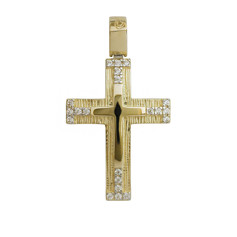 Χρυσός λουστρέ σταυρός Κ14 διακοσμημένος με λευκά ζιργκόν