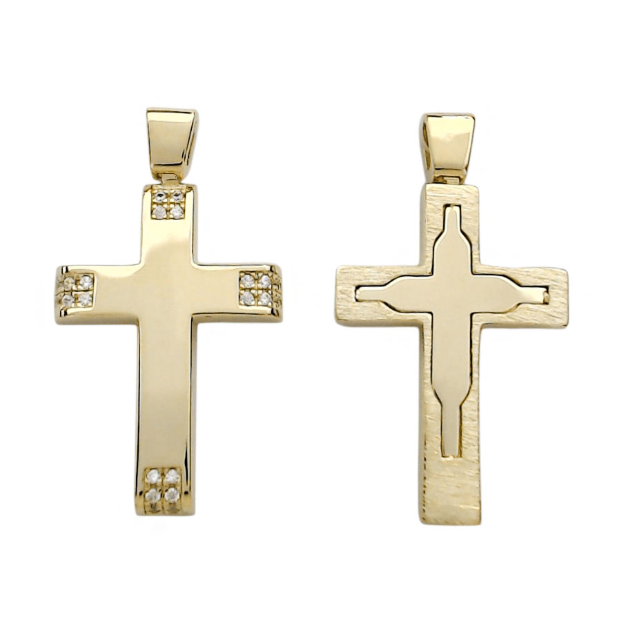 Χρυσός σταυρός διπλής όψης με λευκά ζιργκόν