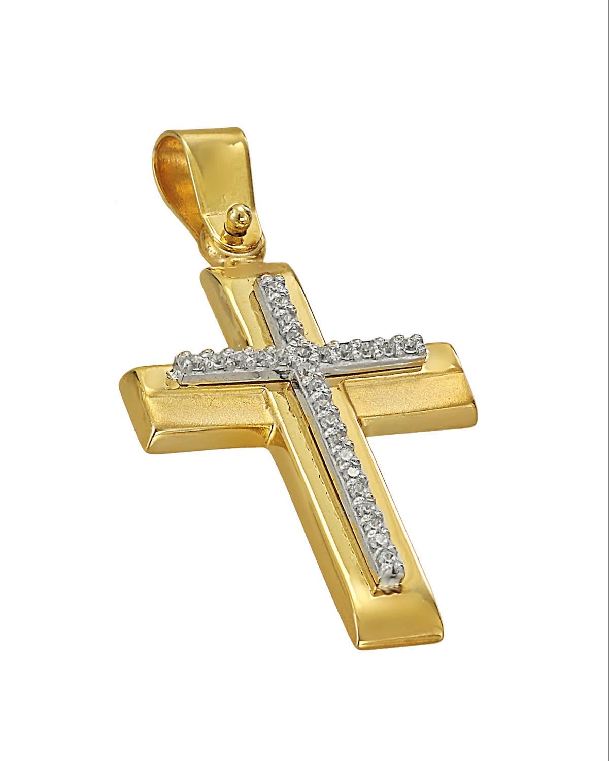 Χρυσός λουστρέ σταυρός Κ14 με λευκά ζιργκόν