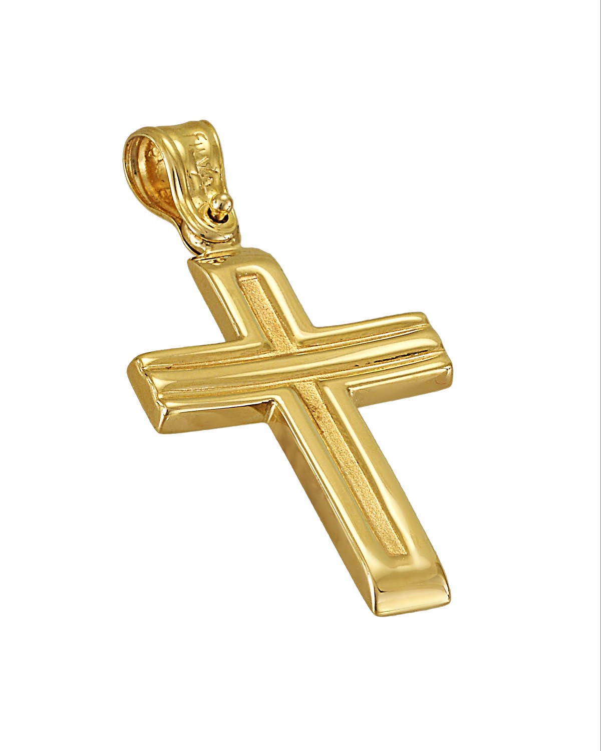 Χρυσός σταυρός Κ14 γραμμωτός με λουστρέ και ματ επιφάνειες