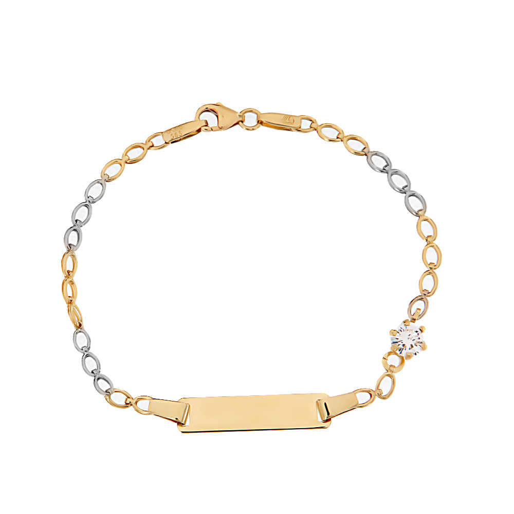 Δίχρωμη παιδική ταυτότητα από χρυσό Κ14 διακοσμημένη με λευκό ζιργκόν