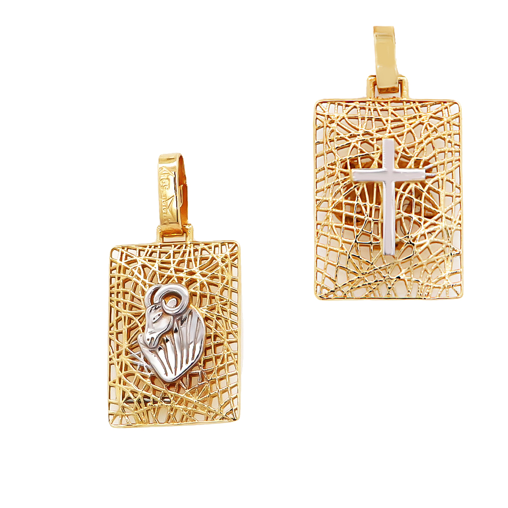 Χρυσό Κ14 ζώδιο κριός, διπλής όψης, δίχρωμο διάτρητο