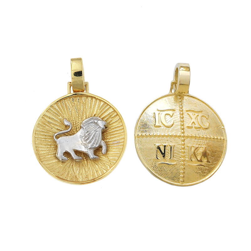 Χρυσό Κ14 ζώδιο λέων, διπλής όψης, δίχρωμο