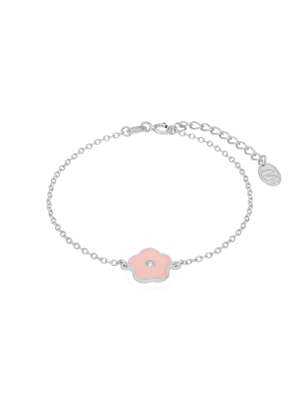 Ασημένιο βραχιόλι Marea με σχέδιο ροζ λουλουδάκι διακοσμημένο με λευκό ζιργκόν