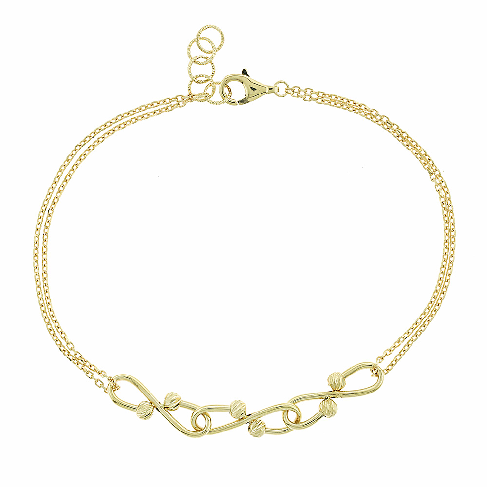 Χρυσό βραχιόλι Κ14 με διπλή αλυσίδα και σχέδιο με κρίκους