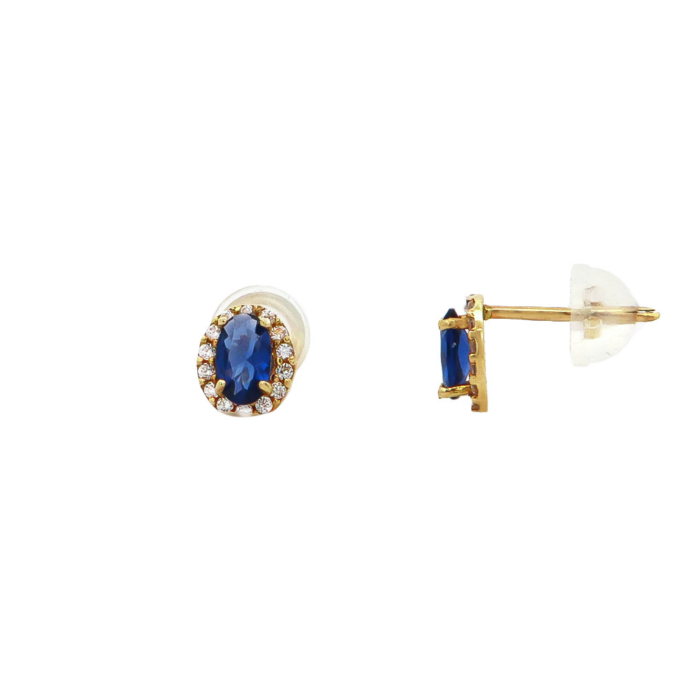 Καρφωτά χρυσά 14Κ σκουλαρίκια ροζέτα με μπλε συνθετική πέτρα και λευκά ζιργκόν