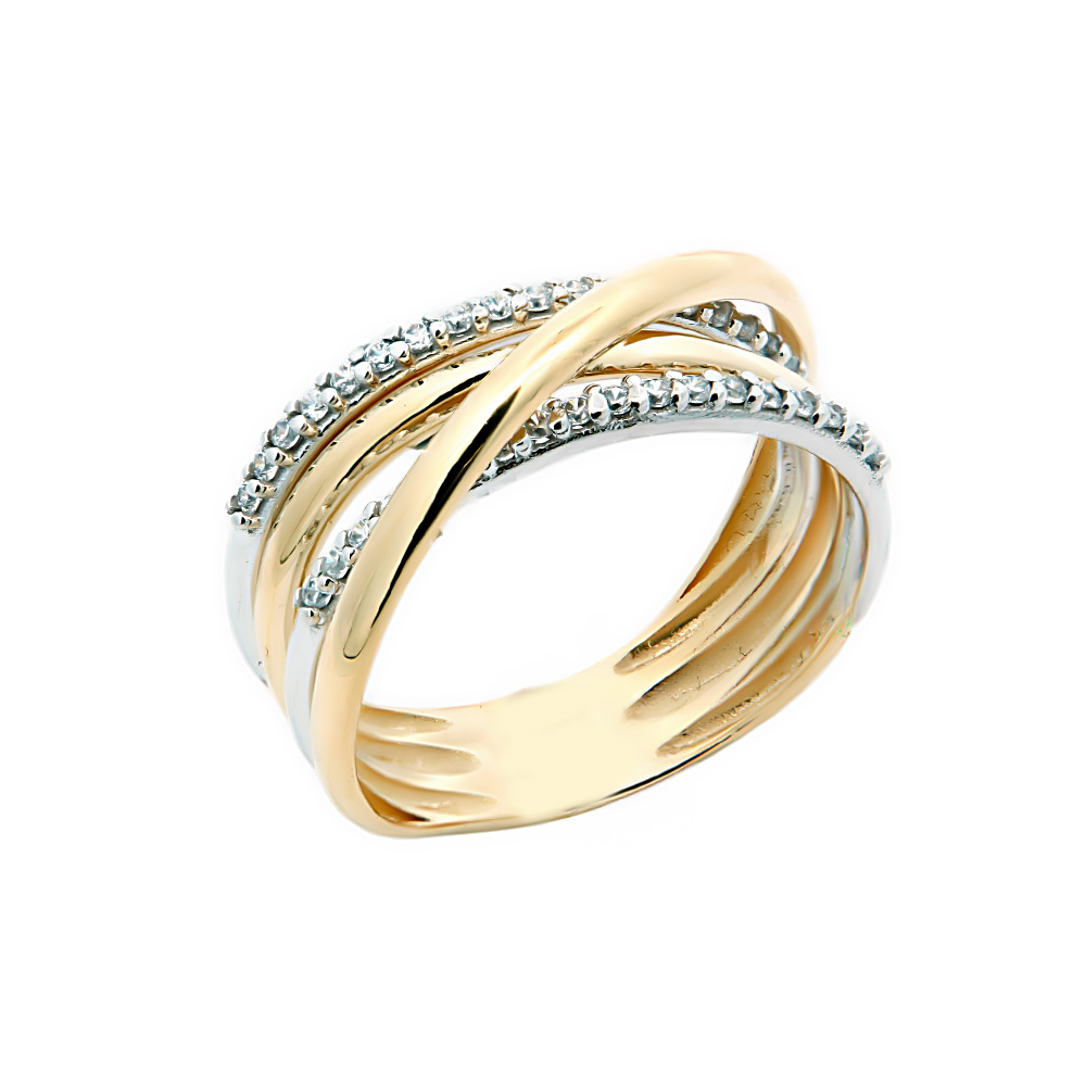 Δίχρωμο φαρδύ δαχτυλίδι Κ14 με ζιργκόν πέτρες
