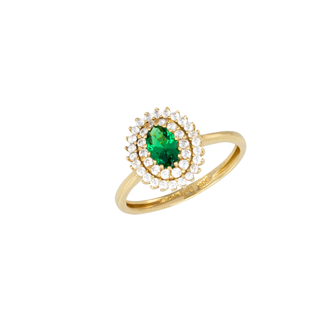 Δαχτυλίδι Κ14 ροζέτα οβάλ με πράσινη πέτρα