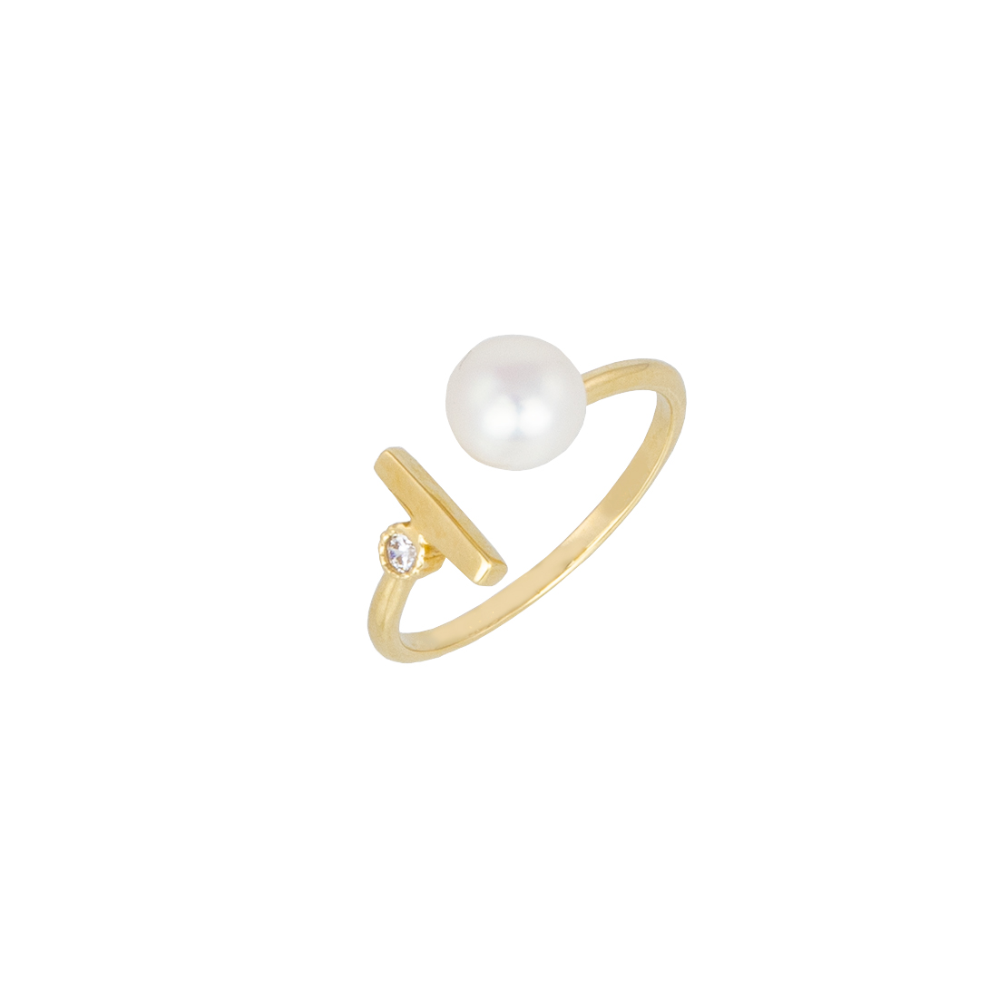 Χρυσό δαχτυλίδι Κ14 με μαργαριτάρι και ζιργκόν σε μοντέρνο σχέδιο