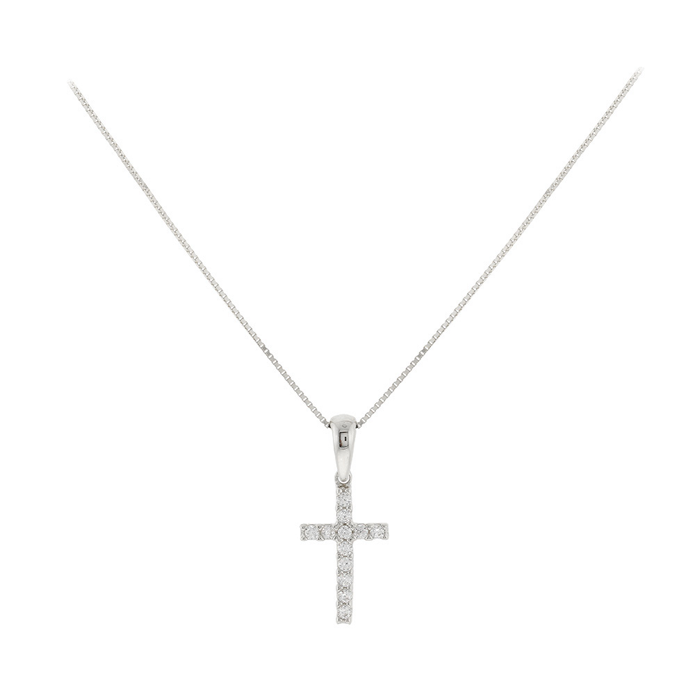 Λευκόχρυσο κολιέ με σταυρό και ζιργκόν