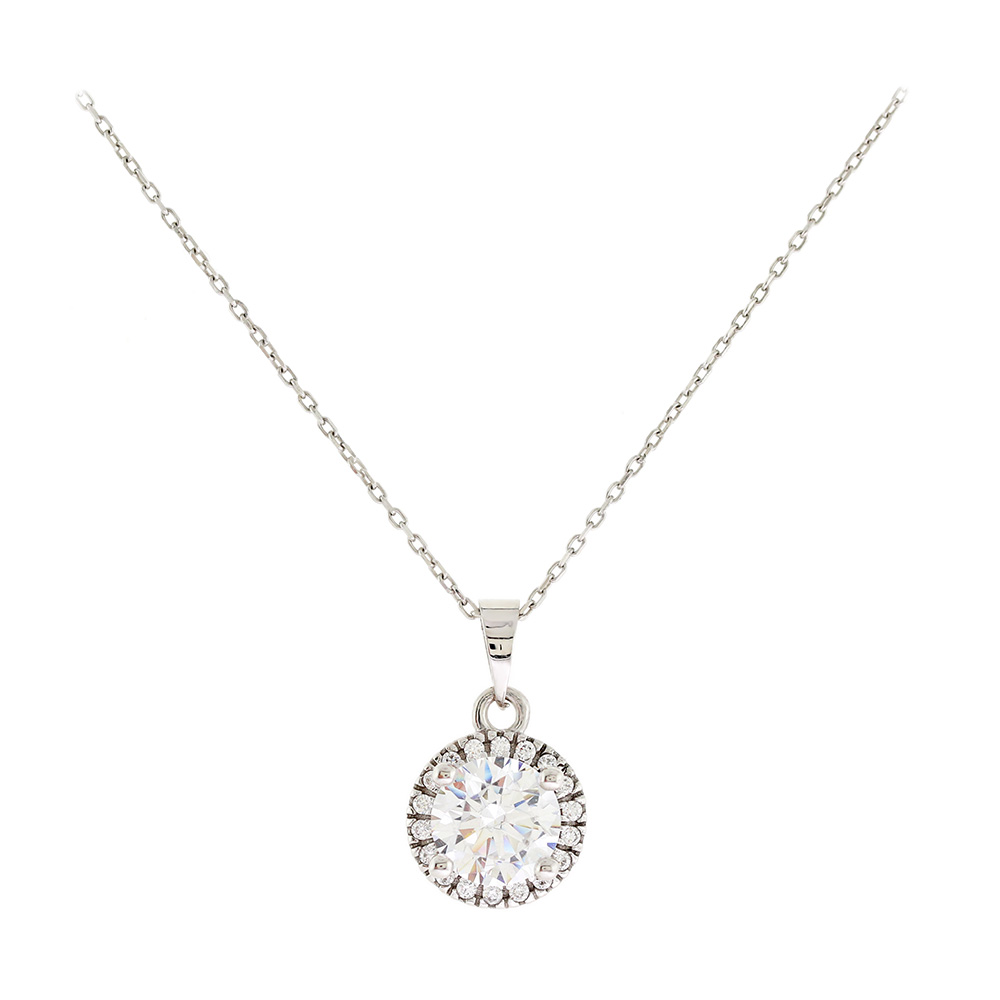 Λευκόχρυσο κολιέ με στρογγυλή ροζέτα και ζιργκόν