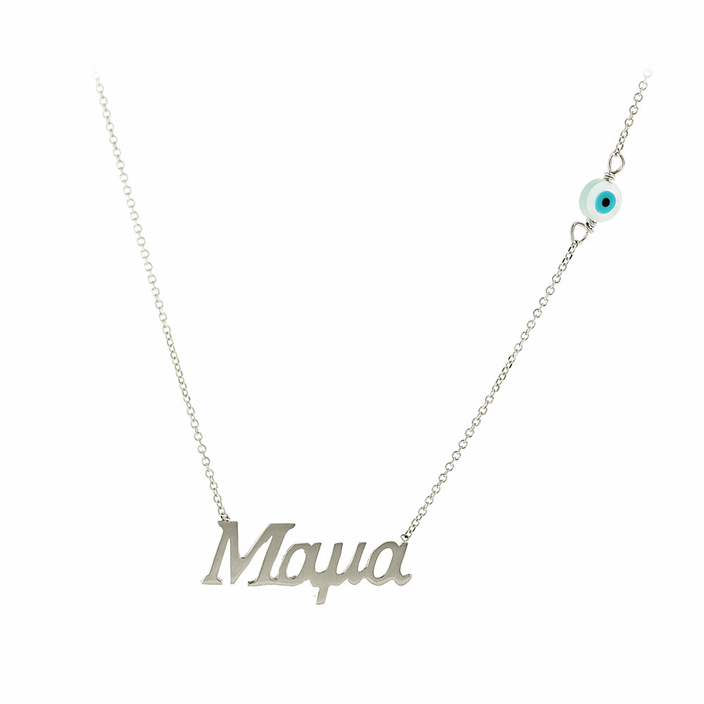 Λευκόχρυσο κολιέ μαμά Κ9 με ματάκι στην αλυσίδα