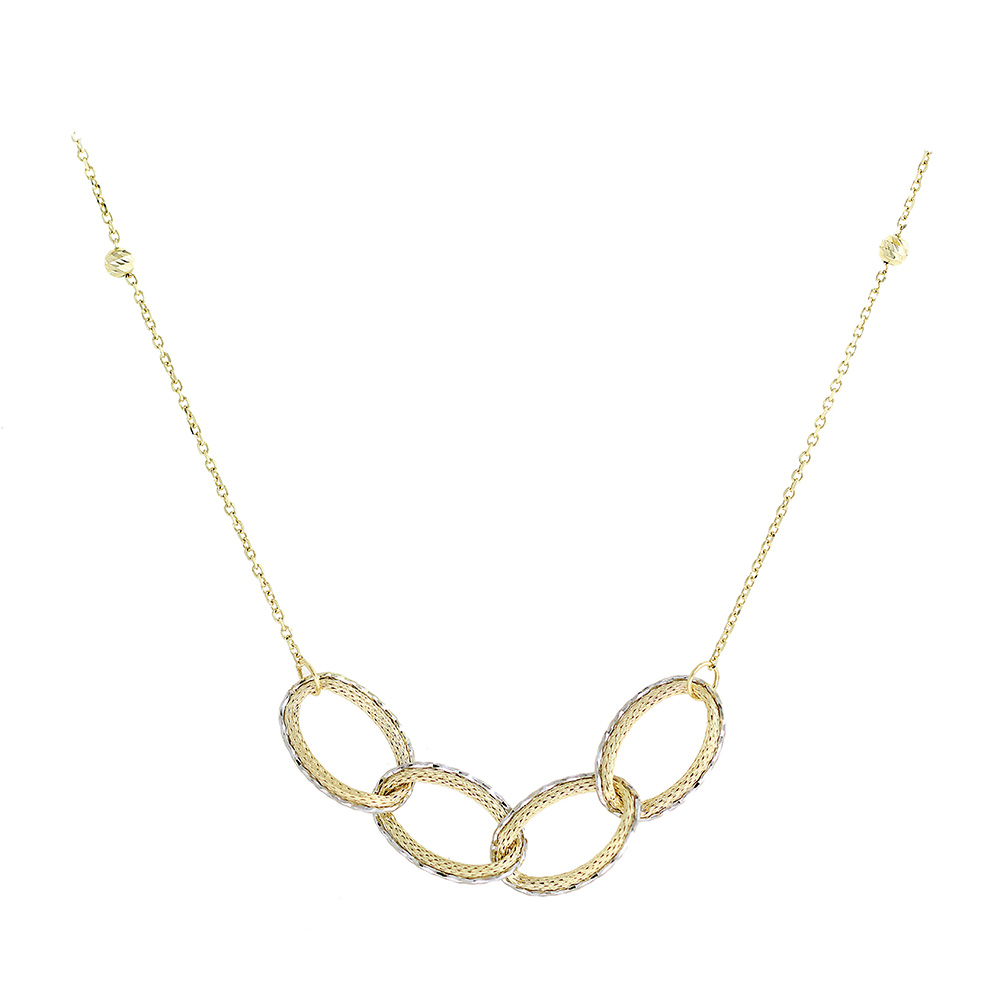 Δίχρωμο χρυσό κολιέ Κ14 αλυσιδωτό με οβάλ κρίκους και διαμανταρισμένες μπίλιες