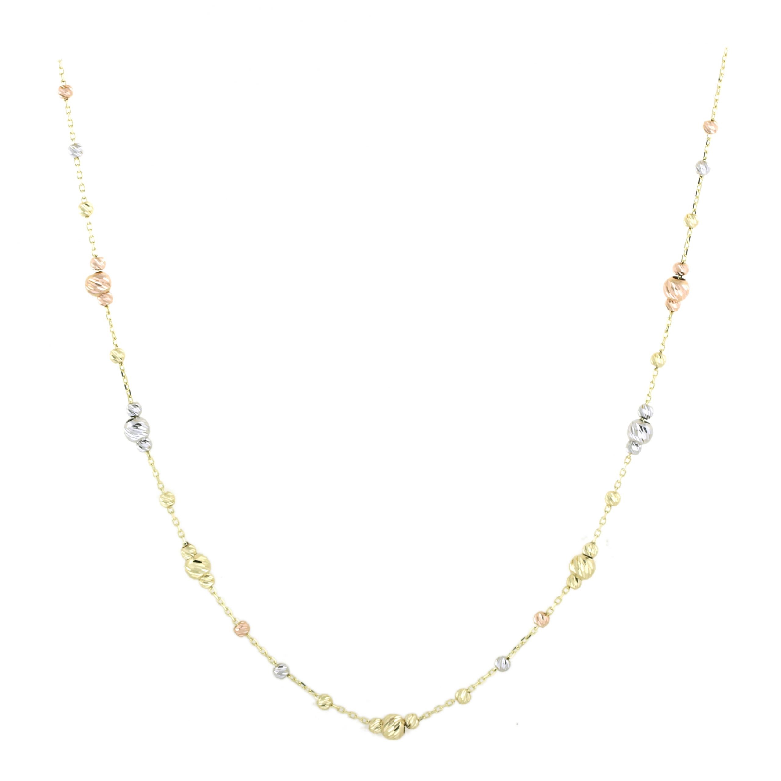 Χρυσό κολιέ Κ14 διακοσμημένο με διαμανταρισμένες μπίλιες στα 3 χρώματα του χρυσού