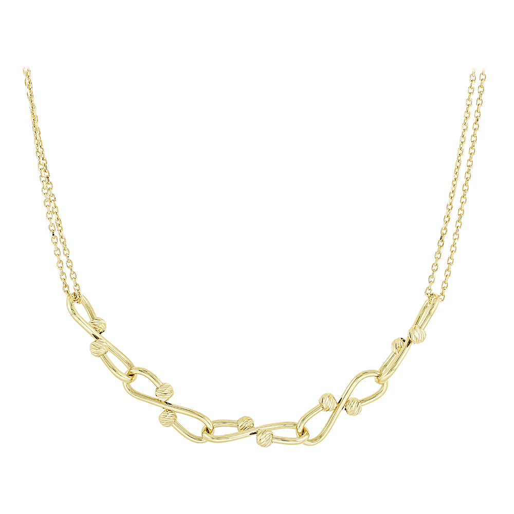 Χρυσό κολιέ Κ14 με διπλή αλυσίδα και σχέδιο με κρίκους