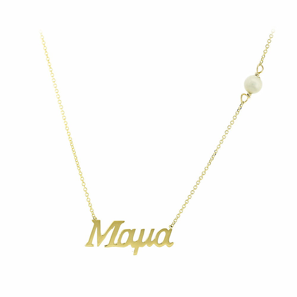 Χρυσό κολιέ μαμά Κ9 με μαργαριτάρι στην αλυσίδα