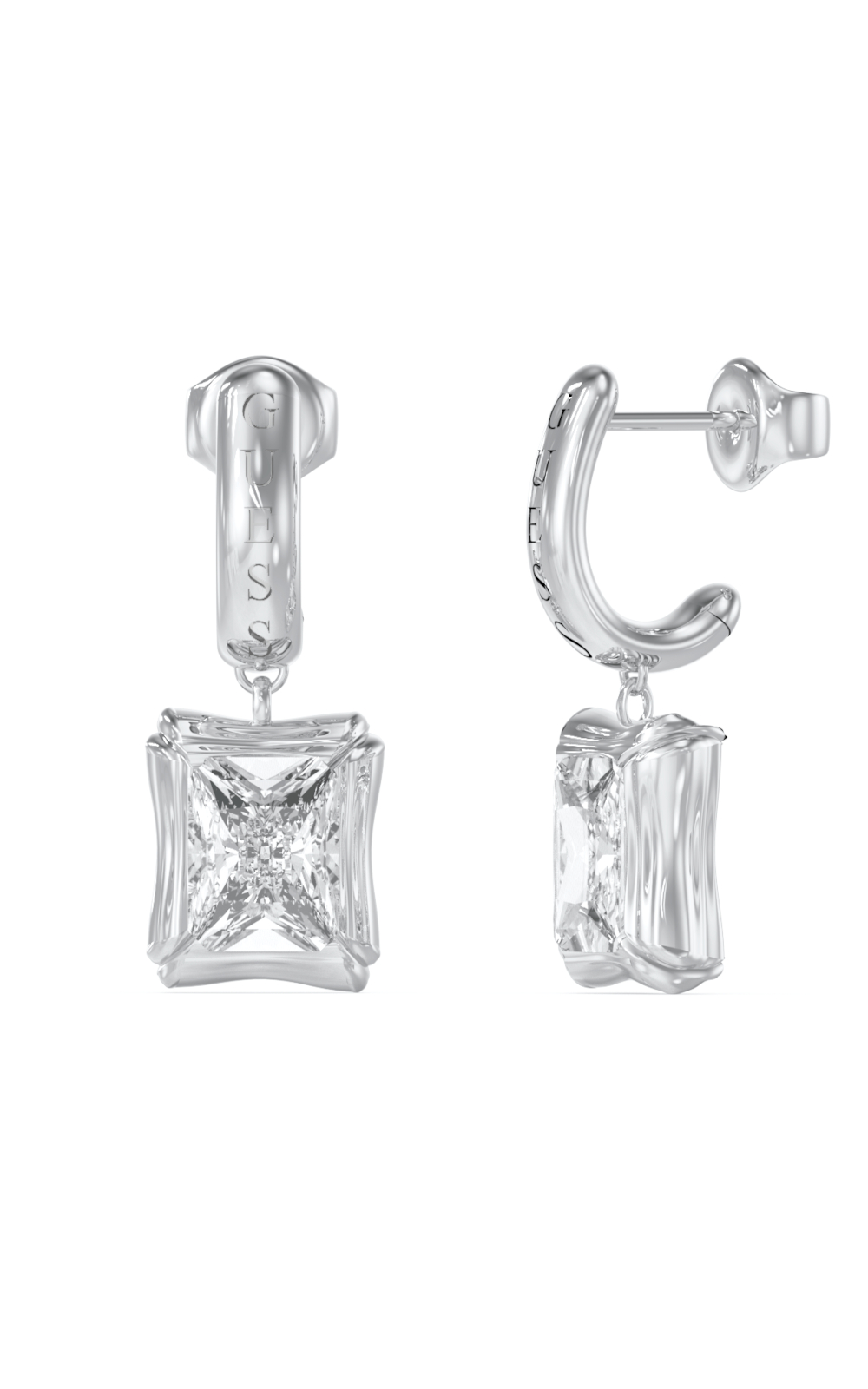 Γυναικεία σκουλαρίκια GUESS STEEL, ασημένιου χρώματος με πέτρα και λογότυπο(2,6cm).