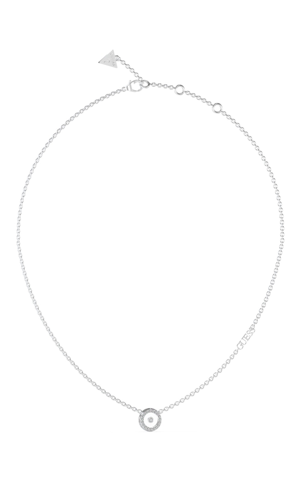 Γυναικείο κολιέ GUESS STEEL GUESS BOND JUBN03258JWRHT/U ασημένιου χρώματος με στρογγυλό σχέδιο(38,10-43,18cm).