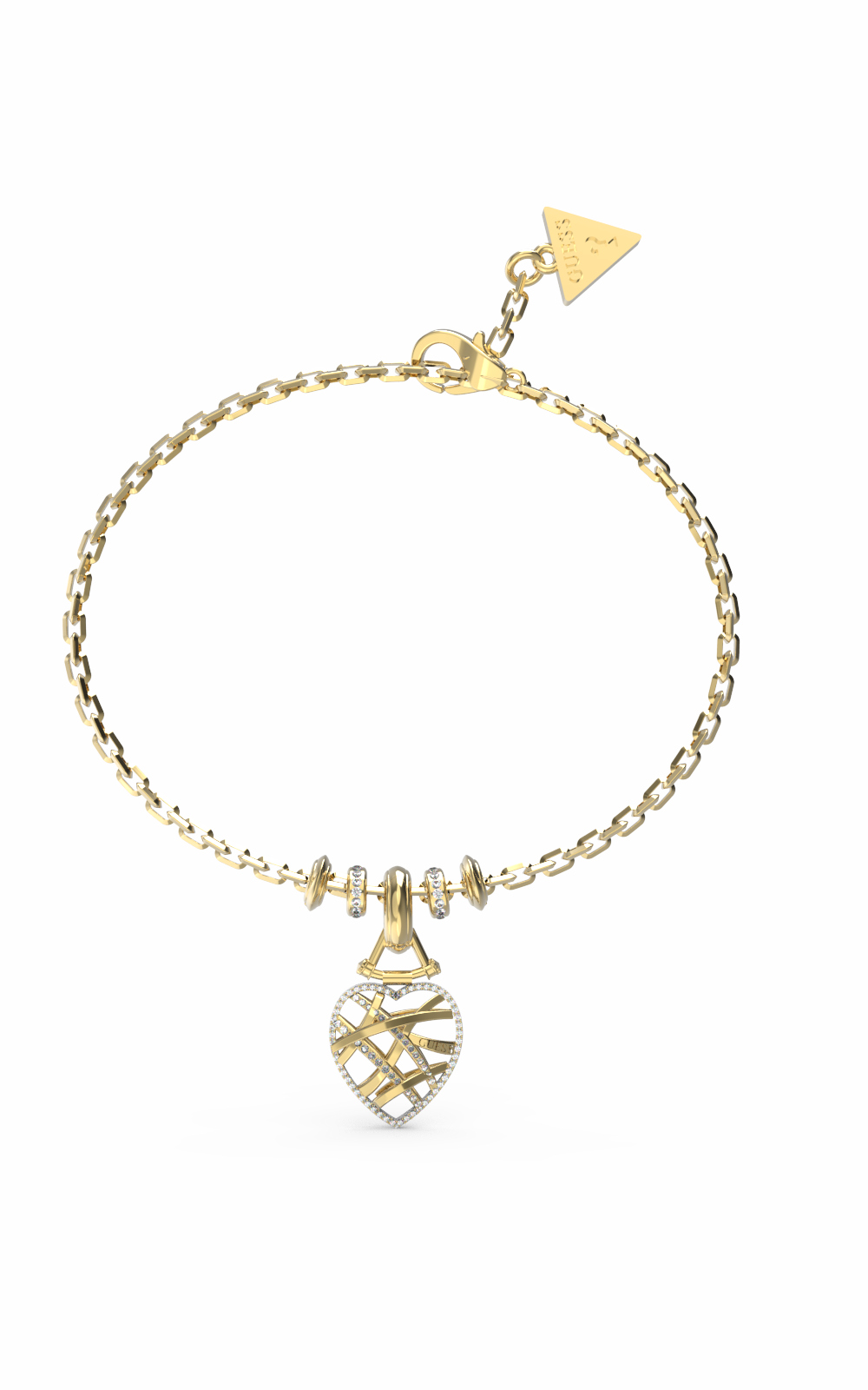 GUESS STEEL HEART CAGE JUBB03100JWYGL Χρυσό Βραχιόλι Με Καρδιά