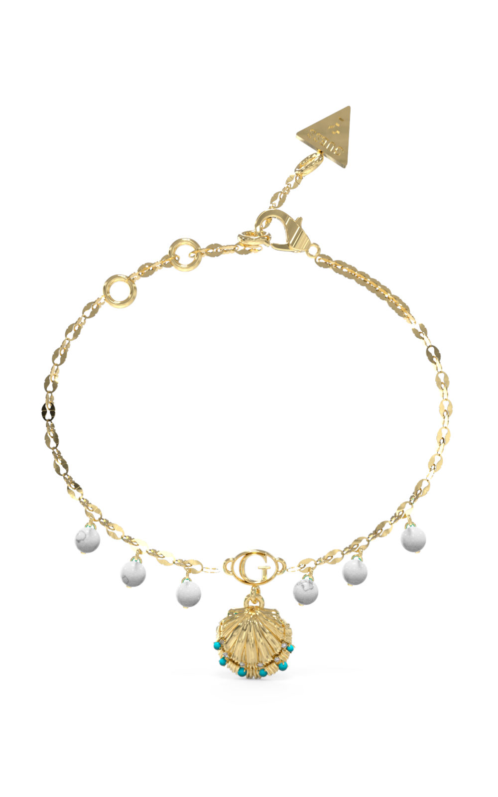 GUESS STEEL SEASHELL JUBB05134JWYGL Βραχιόλι Χρυσό Με Χρυσό Κοχύλι Και Κρεμαστά Σχέδια