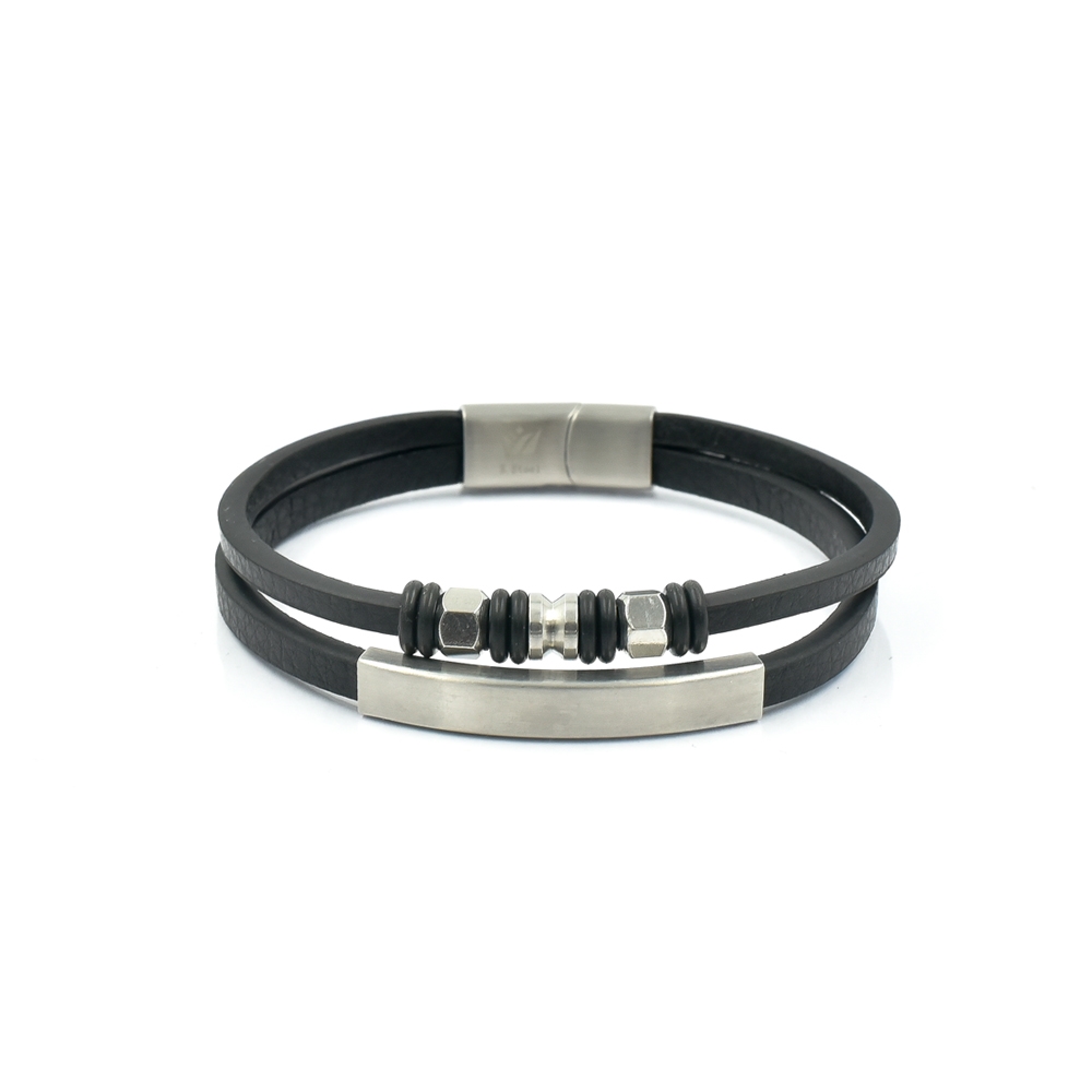 Ανδρικό δερμάτινο βραχιόλι με ατσάλινες λεπτομέρειες