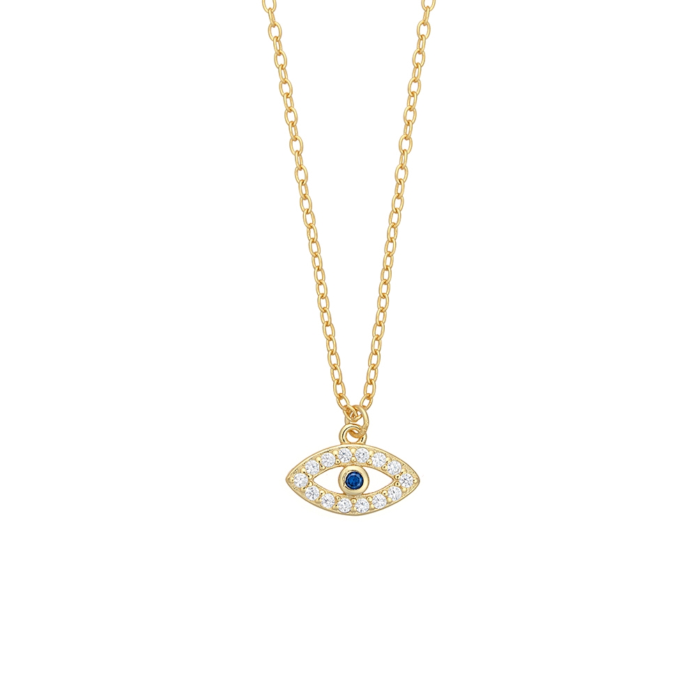 Ασημένιο 925 επίχρυσο κολιέ με κρεμαστό ματάκι διακοσμημένο με λευκά και μπλε ζιργκόν