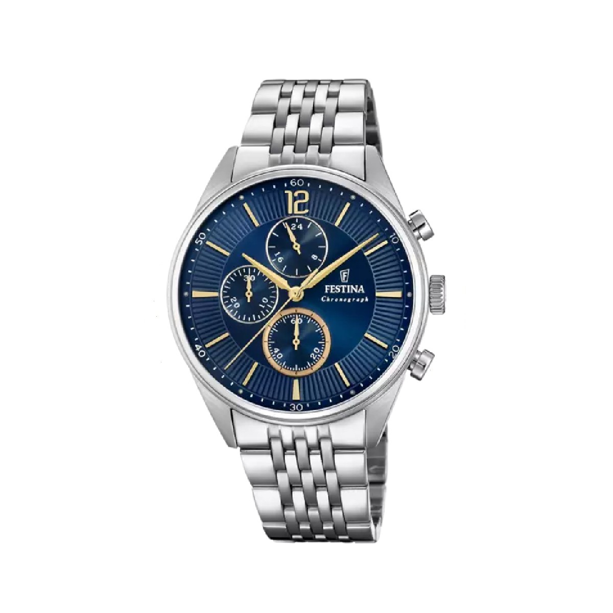Ανδρικό ρολόι Festina F20285/3 με χρονογράφο από ανοξείδωτο ατάλι και μπλε καντράν