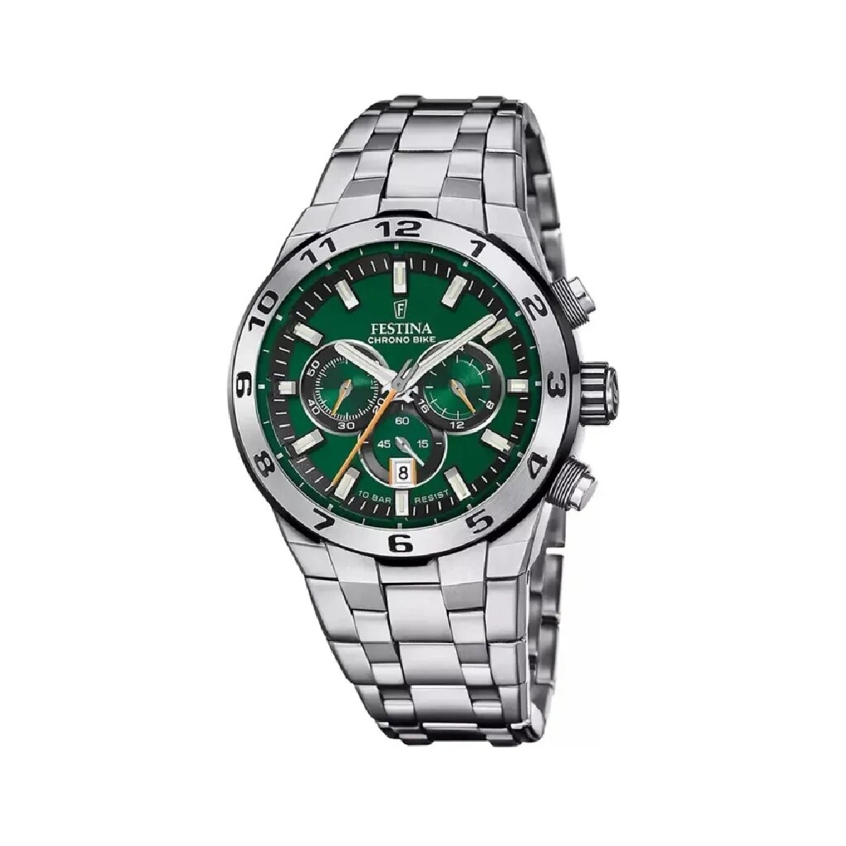 Ρολόι χρονογράφος Festina F20670/2 από ανοξείδωτο ατσάλι με πράσινο καντράν