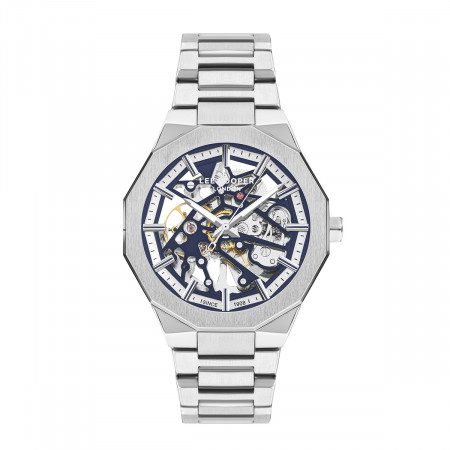 Ανδρικό αυτόματο ρολόι Lee Cooper με ασημί μπρασελέ και ασημί καντράν