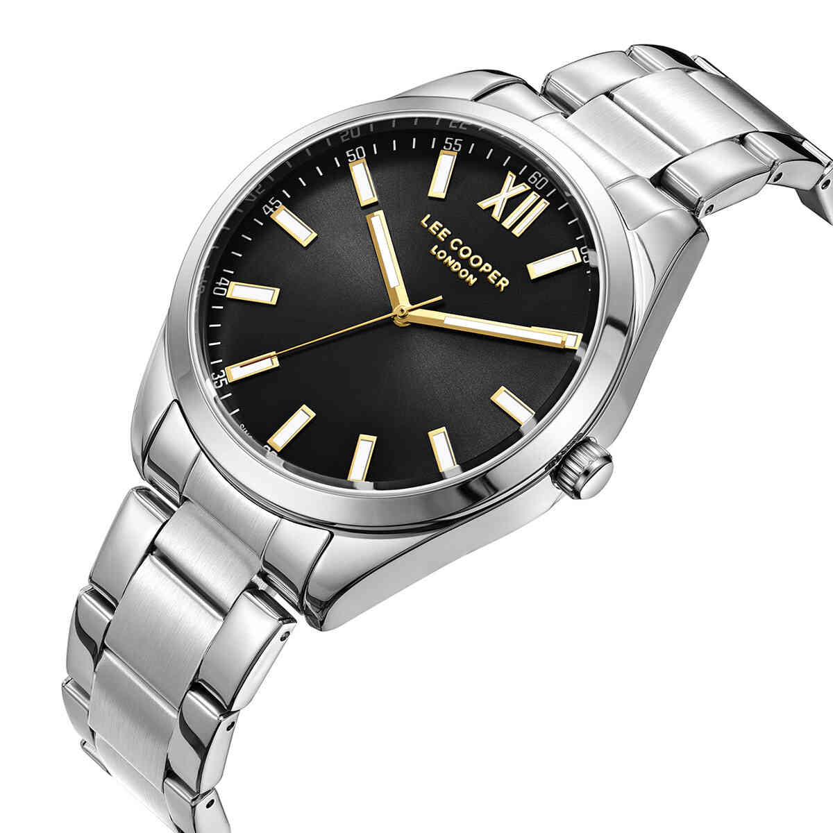 Ανδρικό ρολόι Lee Cooper LC08015.350 με ασημί μπρασελέ και μαύρο καντράν