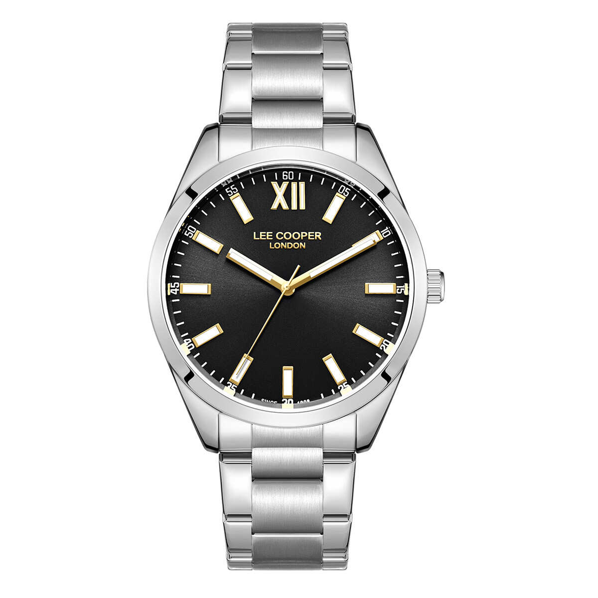 Ανδρικό ρολόι Lee Cooper με ασημί μπρασελέ και μαύρο καντράν