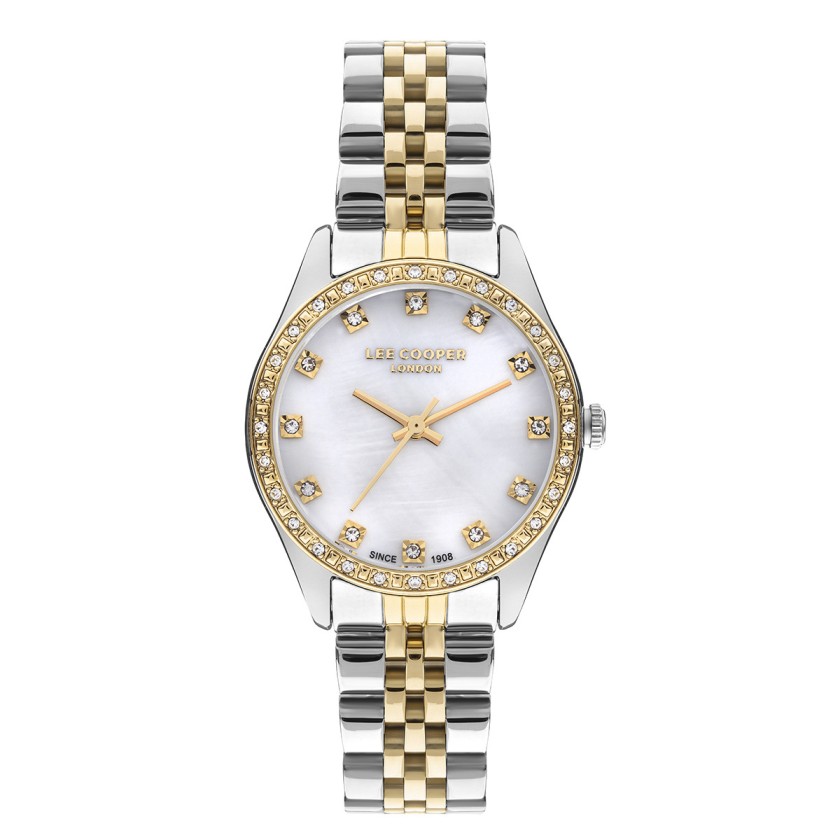 Γυναικείο ρολόι Lee Cooper με δίχρωμο μπρασελέ και λευκό καντράν (φίλντισι)