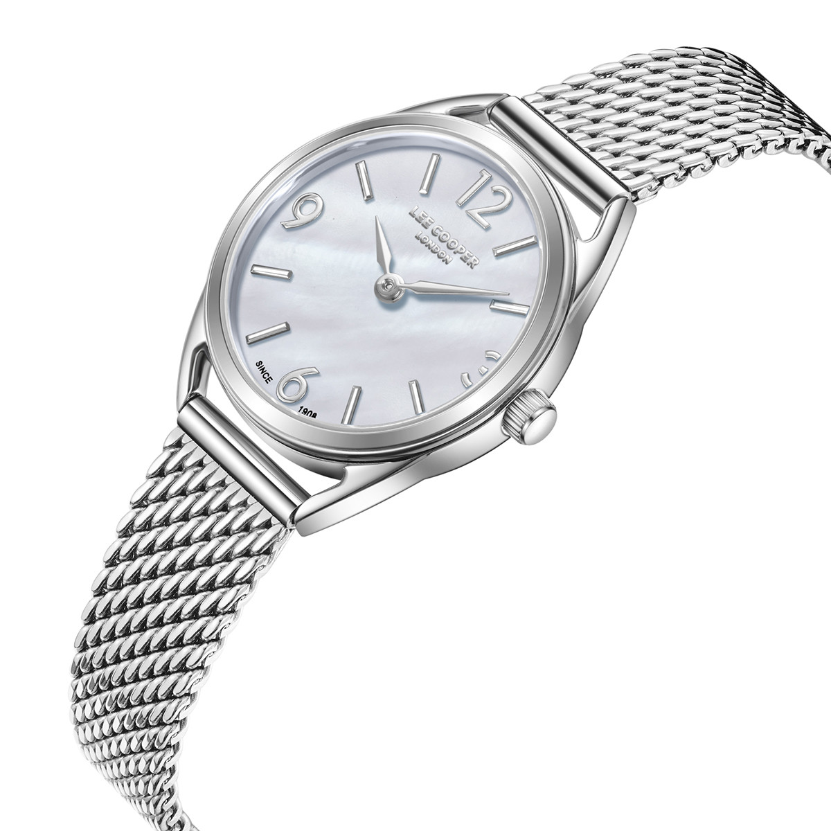 Γυναικείο ρολόι Lee Cooper LC08207.320 με λευκό μπρασελέ και λευκό φίλντισι καντράν