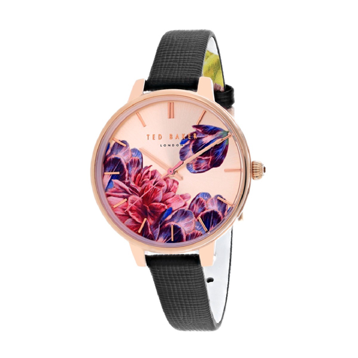 Γυναικείο ρολόι TED BAKER TE50005005 με ροζ κάσα και μαύρο δερμάτινο λουράκι