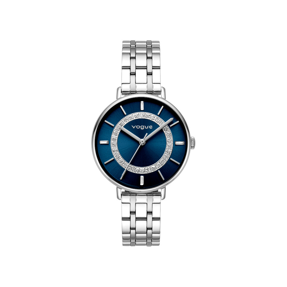 Γυναικείο ρολόι Vogue Karine 2020613682 με λευκό μπρασελέ και μπλε καντράν